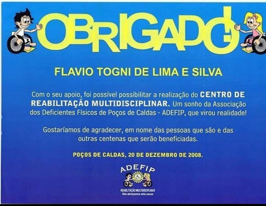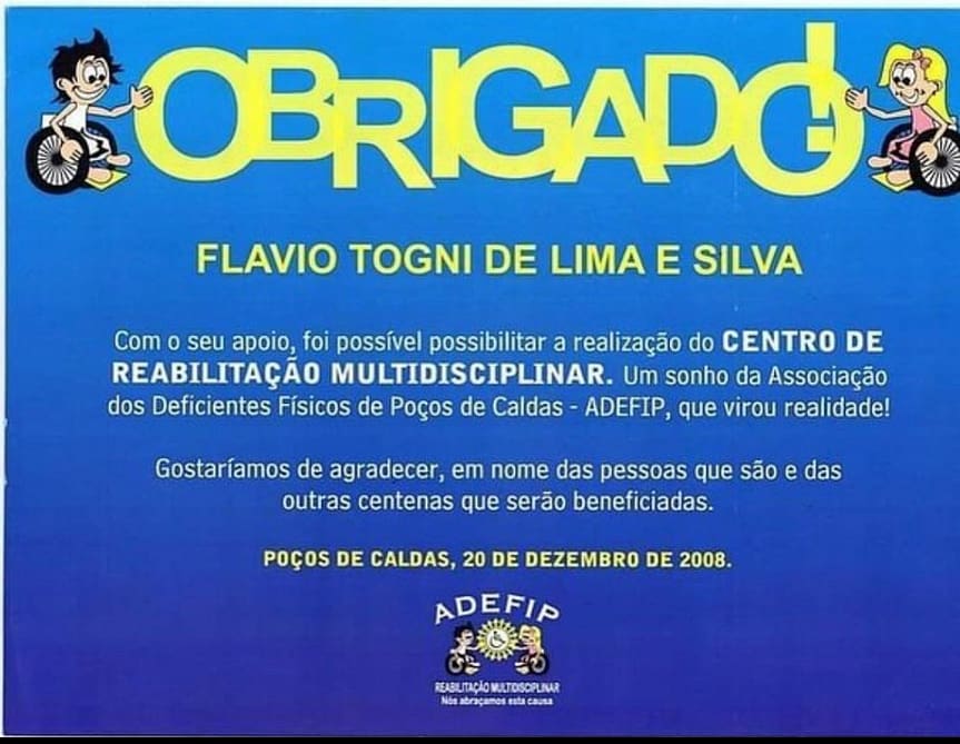 Tenho imensa alegria em também fazer parte da história da ADEFIP – Associação dos Deficientes Físicos de Poços de Caldas. A conquista do Centro de Reabilitação, referência na área, faz parte desta trajetória.